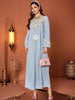 op maat gemaakte flare-pak met satijnen pofmouwen – VALENCIA