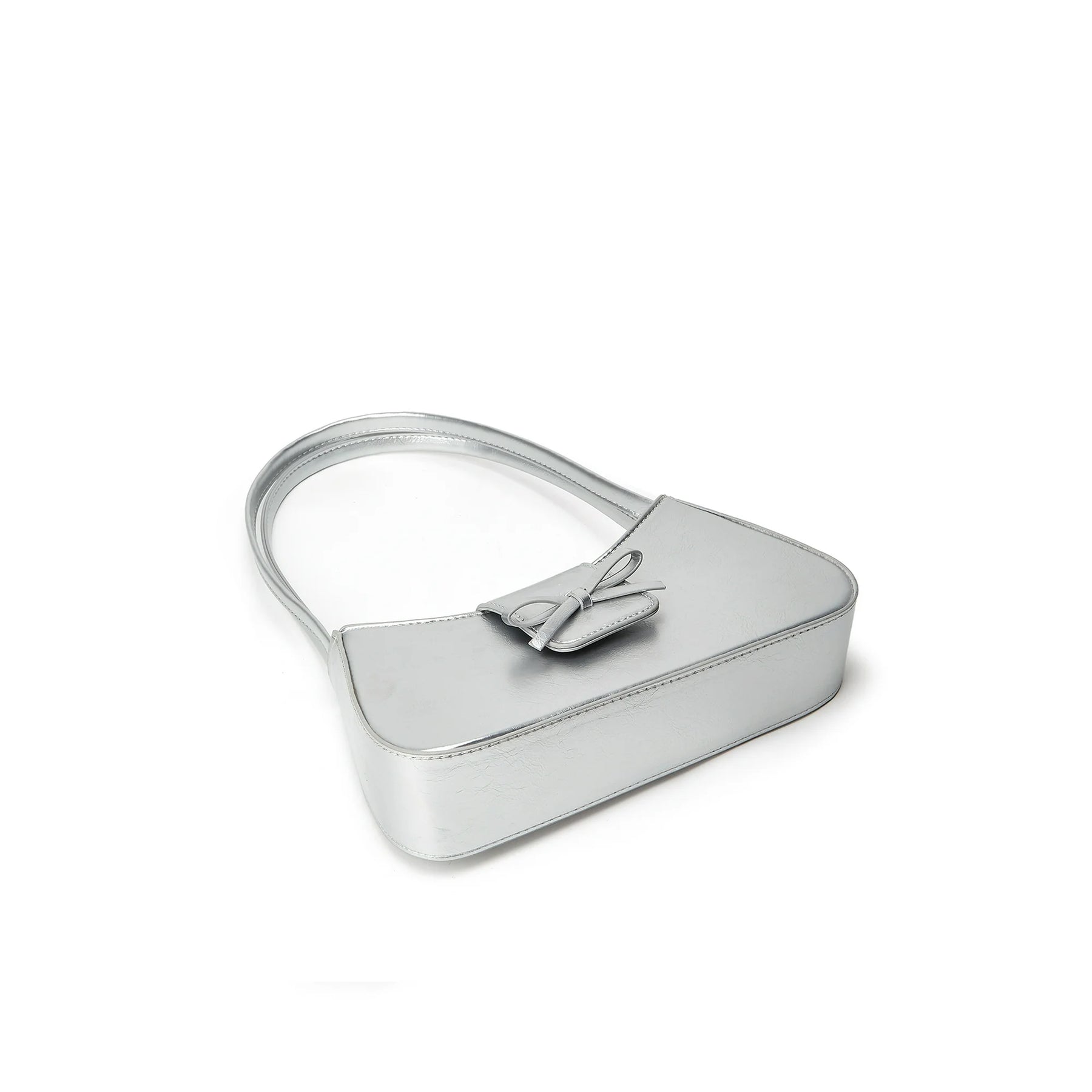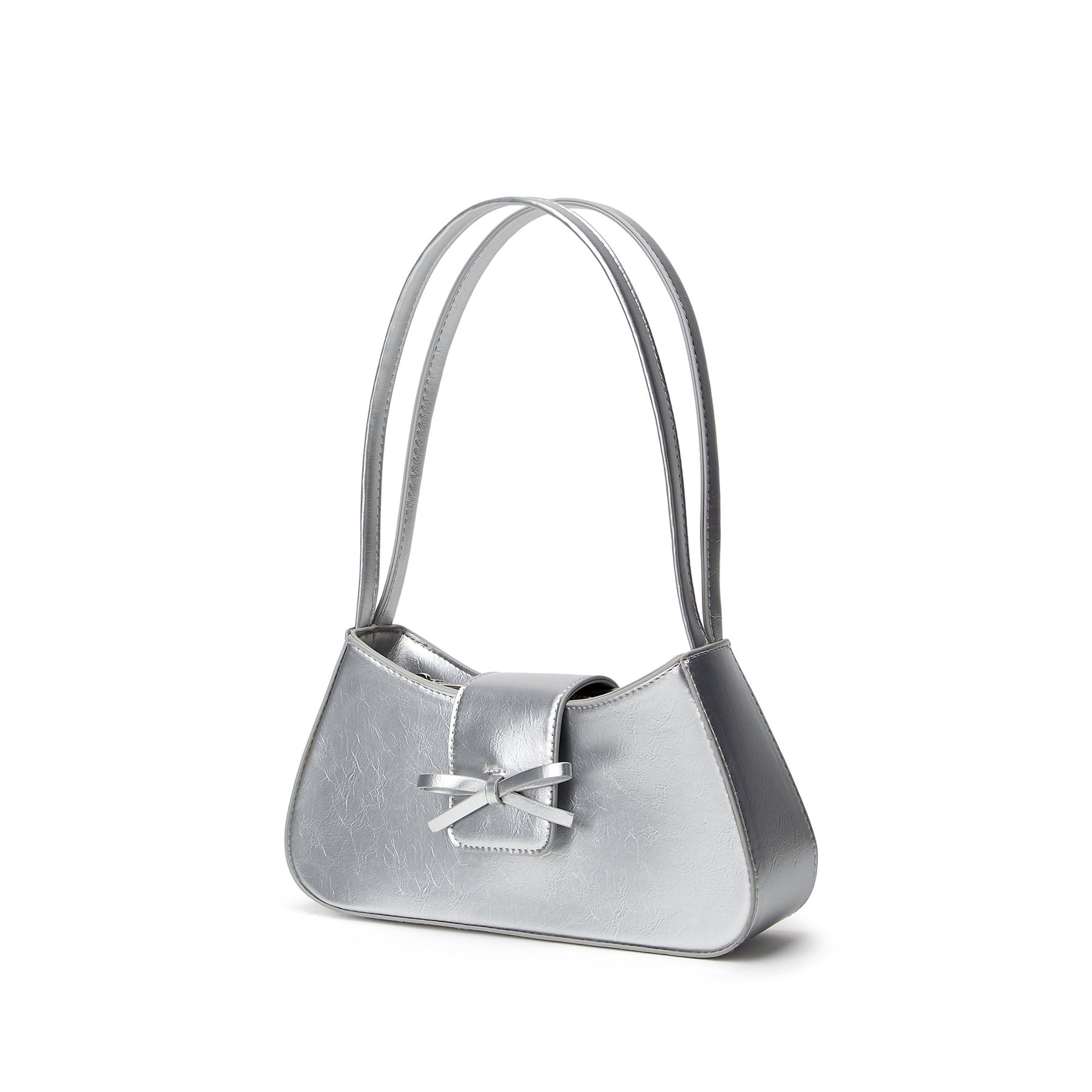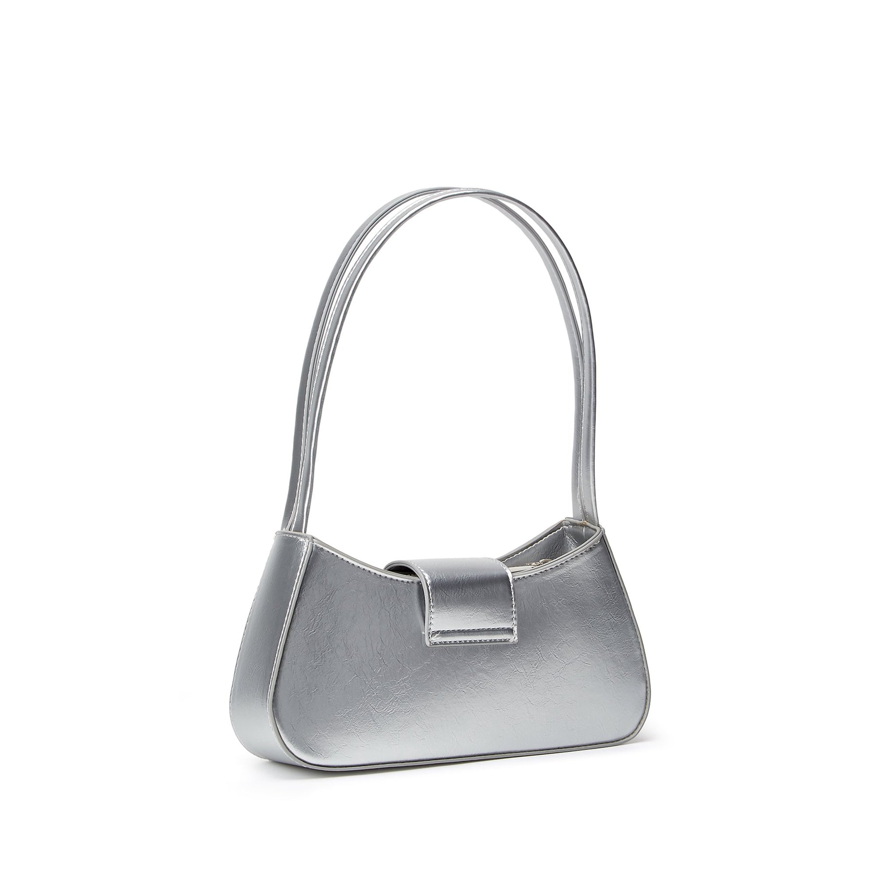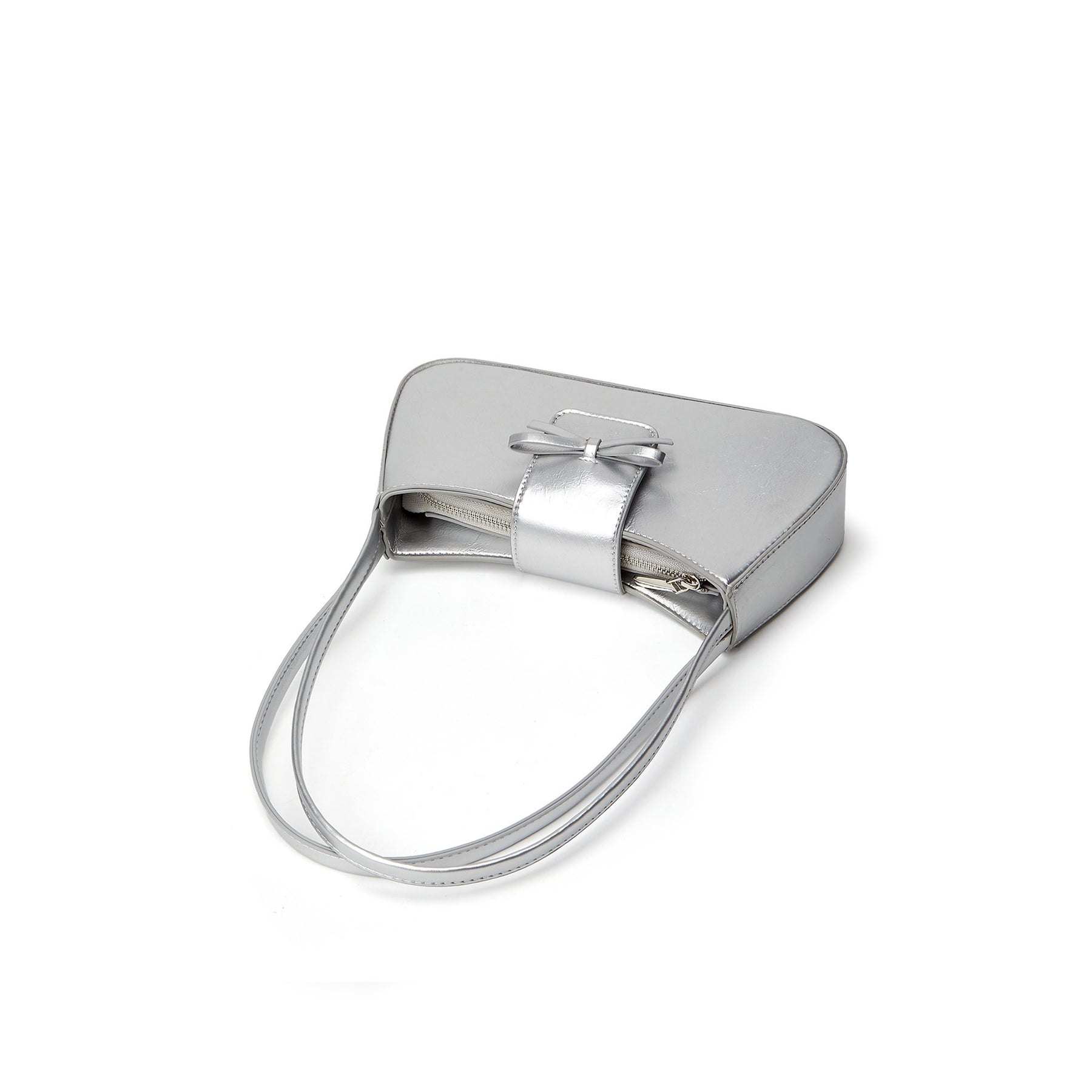 Een slanke en gebeeldhouwde halve maan schoudertas met een afneembare riem en een zacht, gebogen ontwerp. Gemaakt van glad leer met een veilige bovenritssluiting, voegt het een artistiek tintje toe.