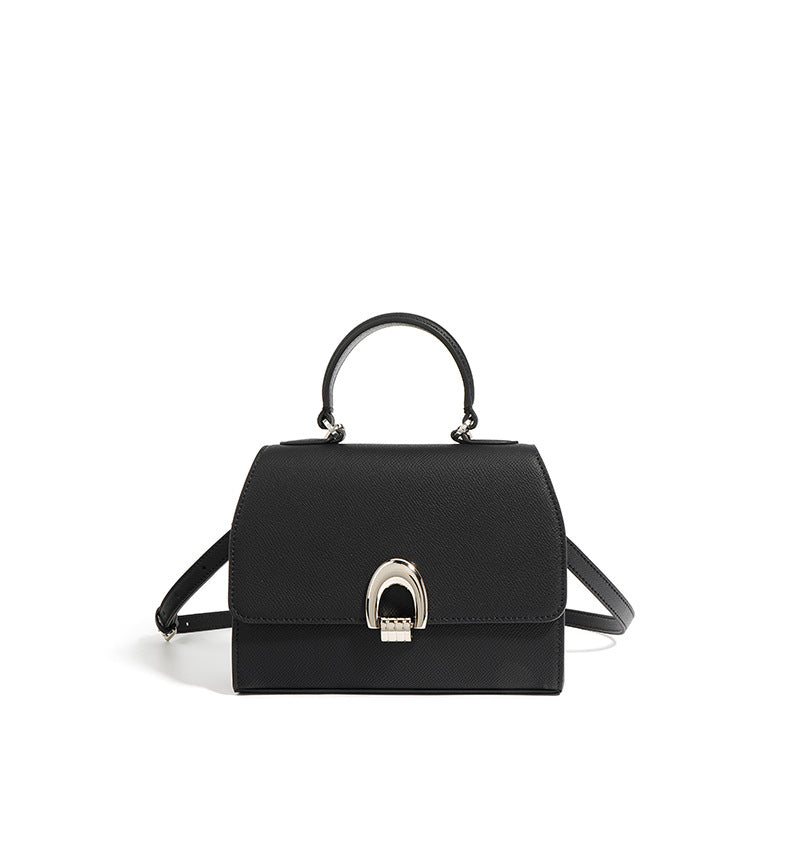 Een slanke en gebeeldhouwde halve maan schoudertas met een afneembare riem en een zacht, gebogen ontwerp. Gemaakt van glad leer met een veilige bovenritssluiting, voegt het een artistiek tintje toe.