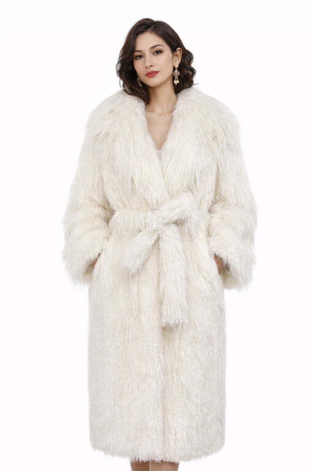 long shaggy faux fur coat with deep collar – RAVENNA