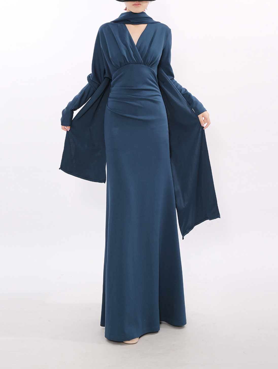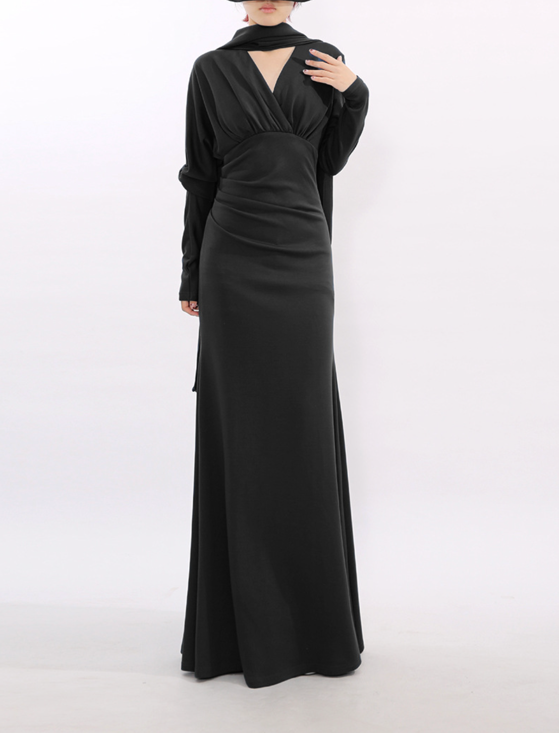 long-sleeve draped maxi dress with scarf neckline – VEIL – missodd.com