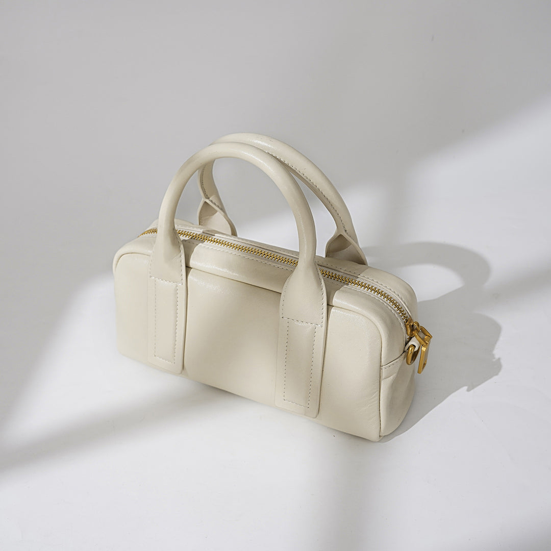Mooi sculpturaal, deze zwart-witte geweven tas heeft een gebogen silhouet, gestructureerde bovenhandvatten en strakke zwarte biezen. Een lichte maar gedurfde metgezel voor je dagelijkse benodigdheden.
