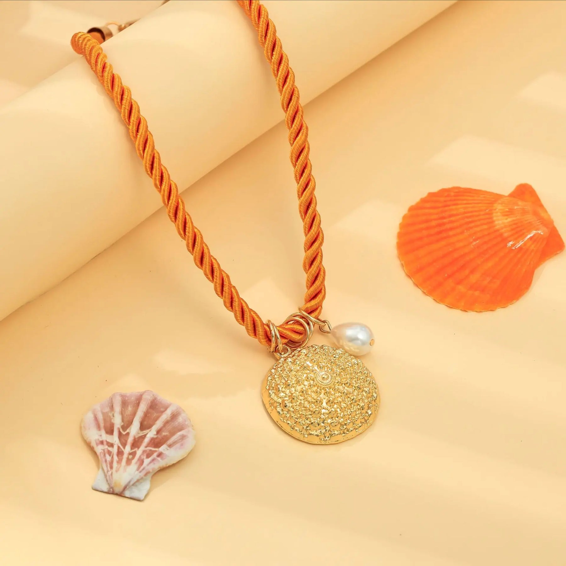 Enjoy playful elegance with this nautical beaded necklace, adorned with a bold red lobster pendant and a delicate pearl pendant, perfect