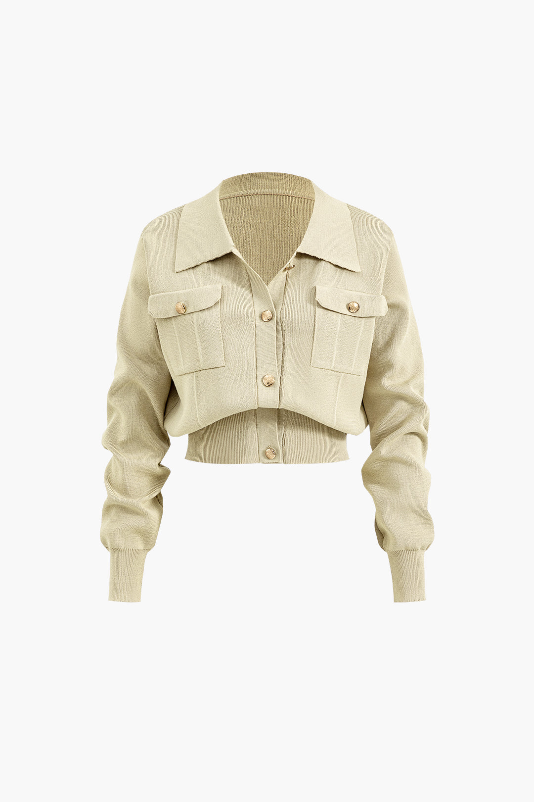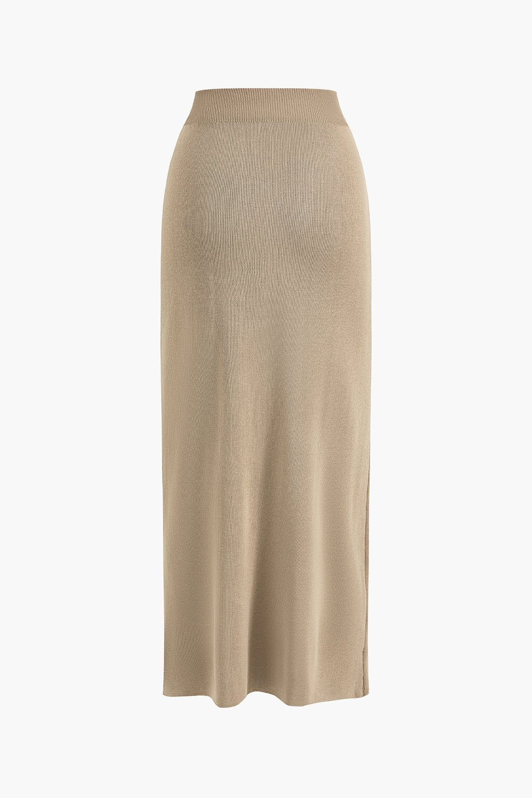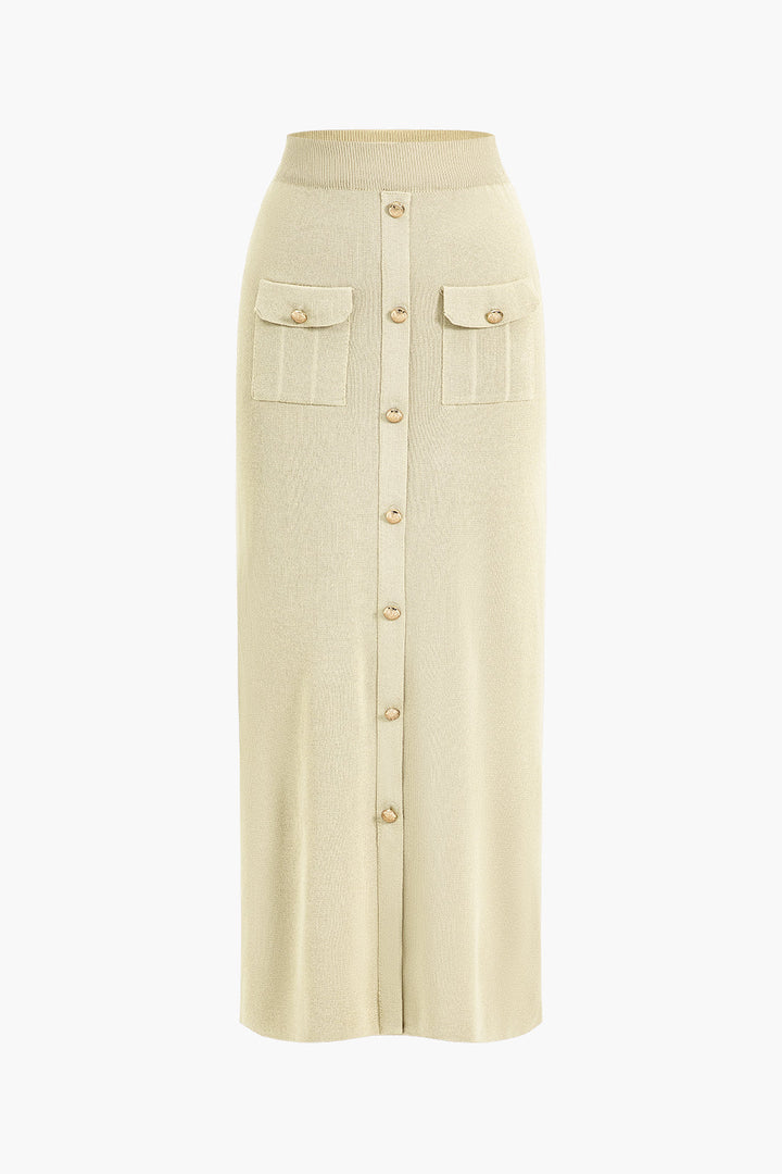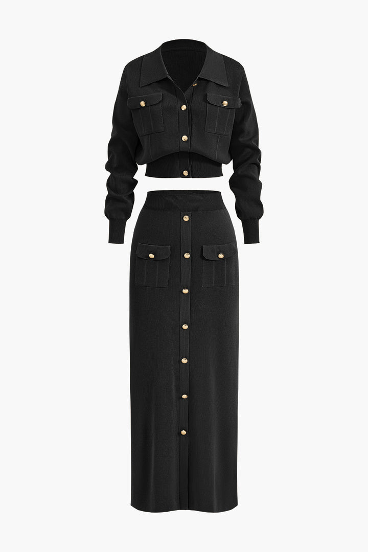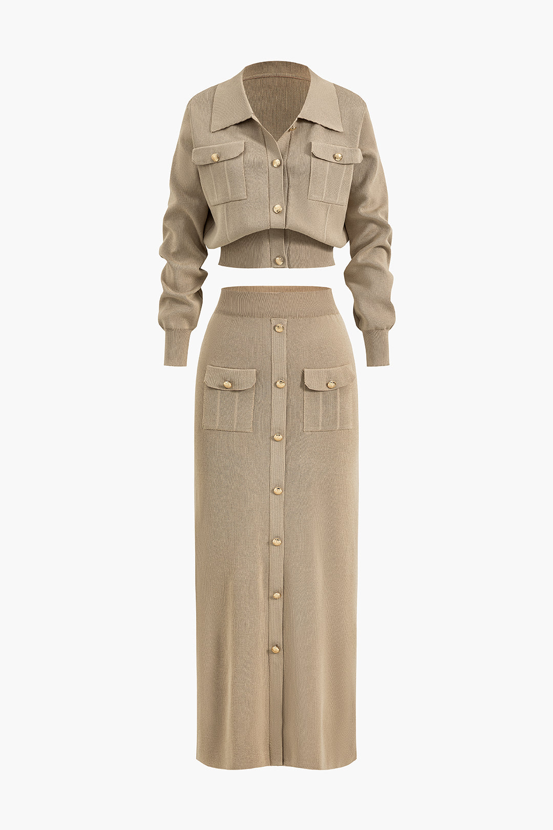 Cropped Button-Up Knit Top And Maxi Skirt Set