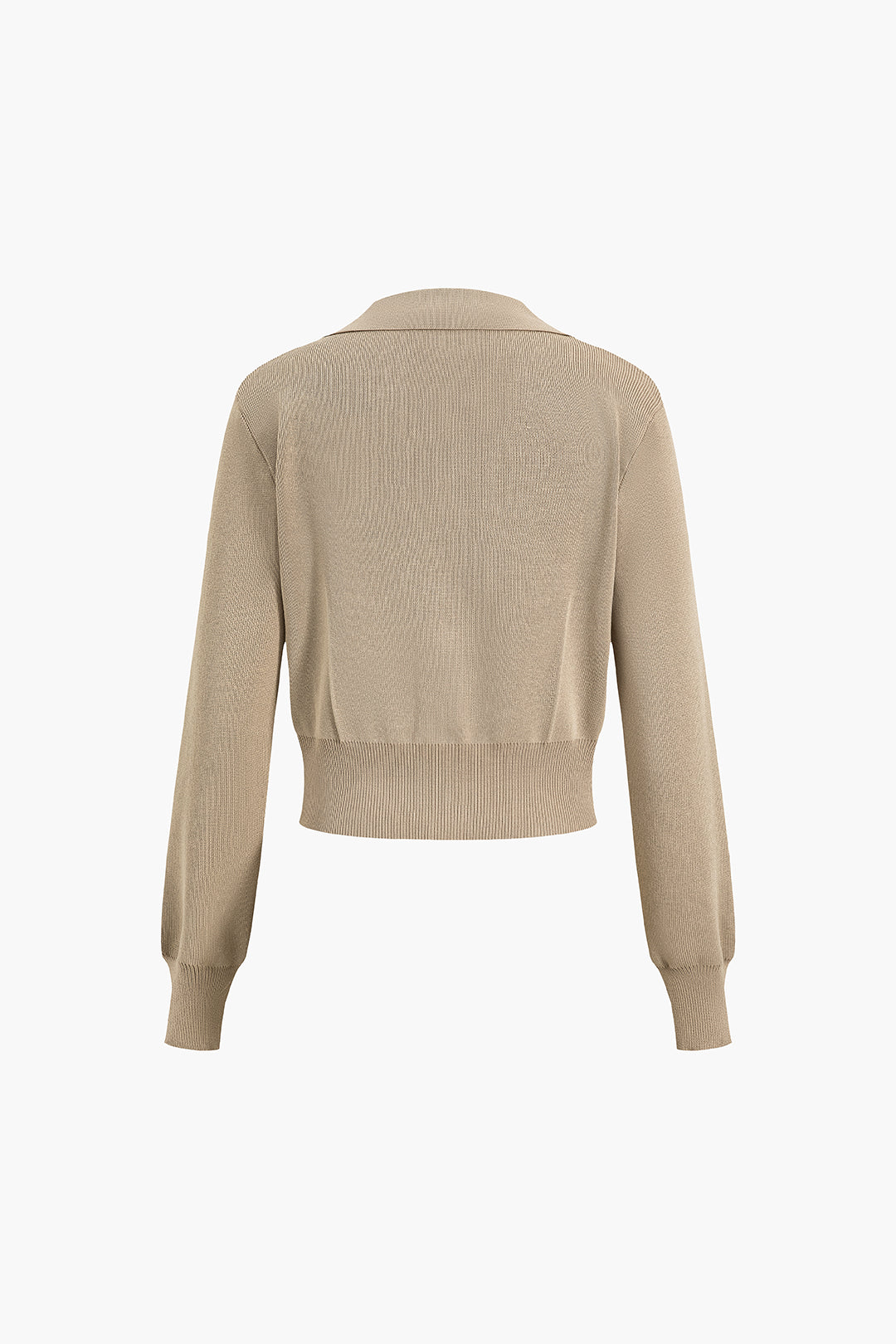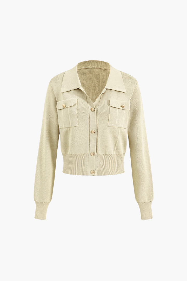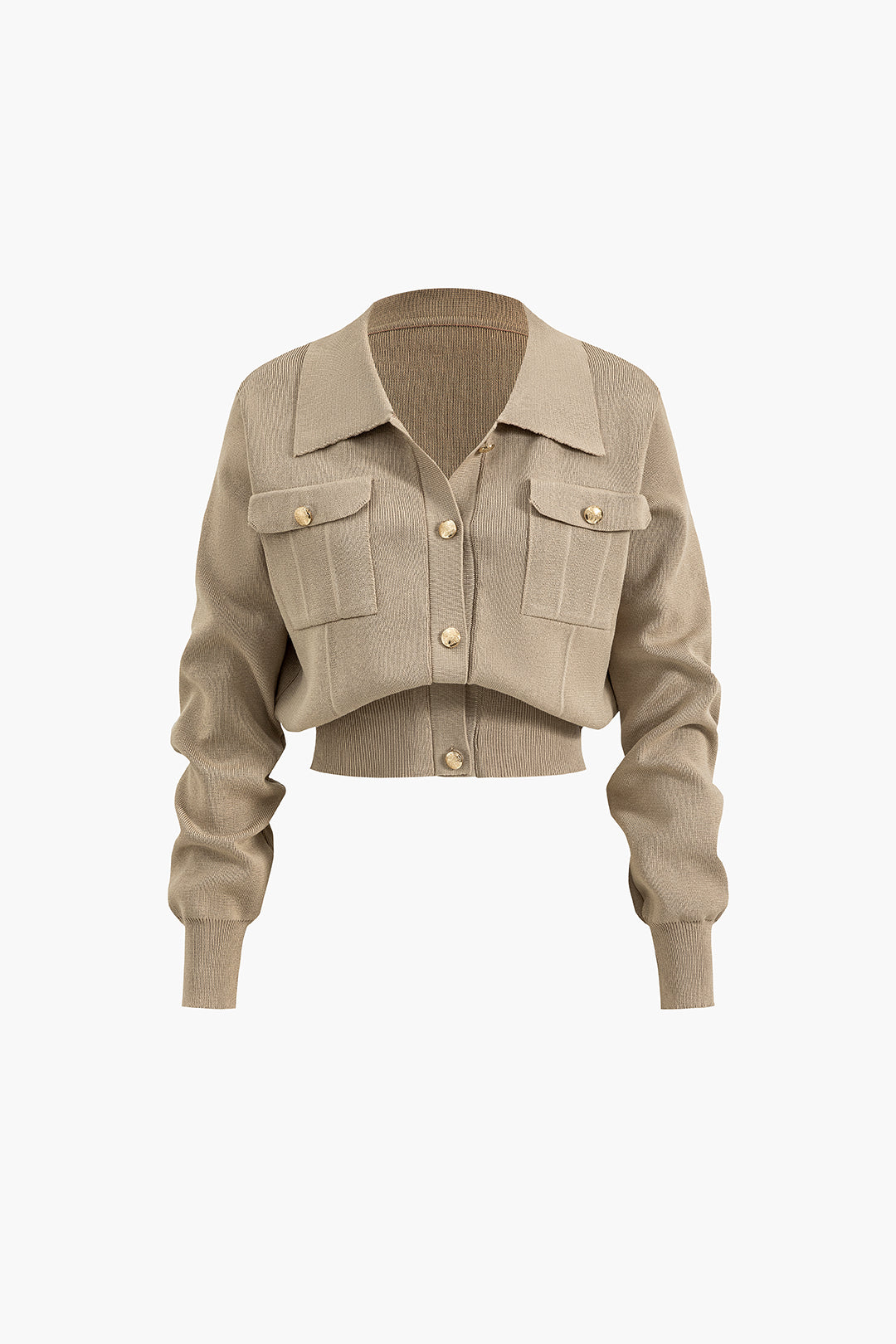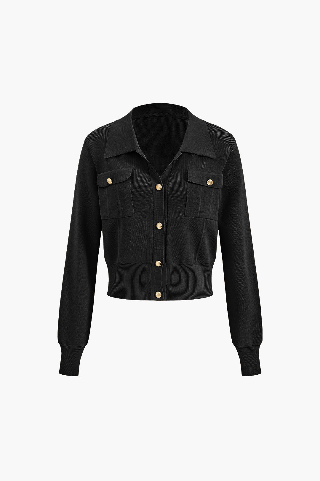 Cropped Button-Up Knit Top And Maxi Skirt Set