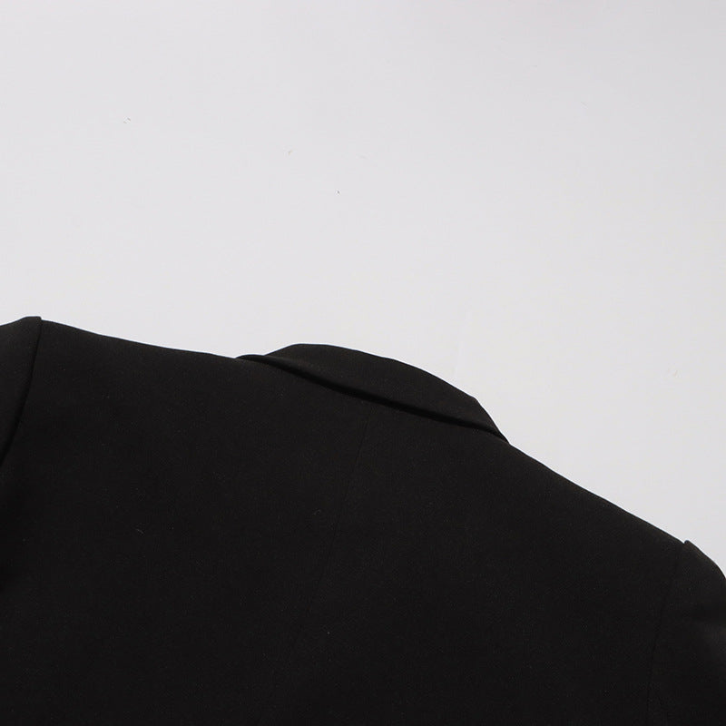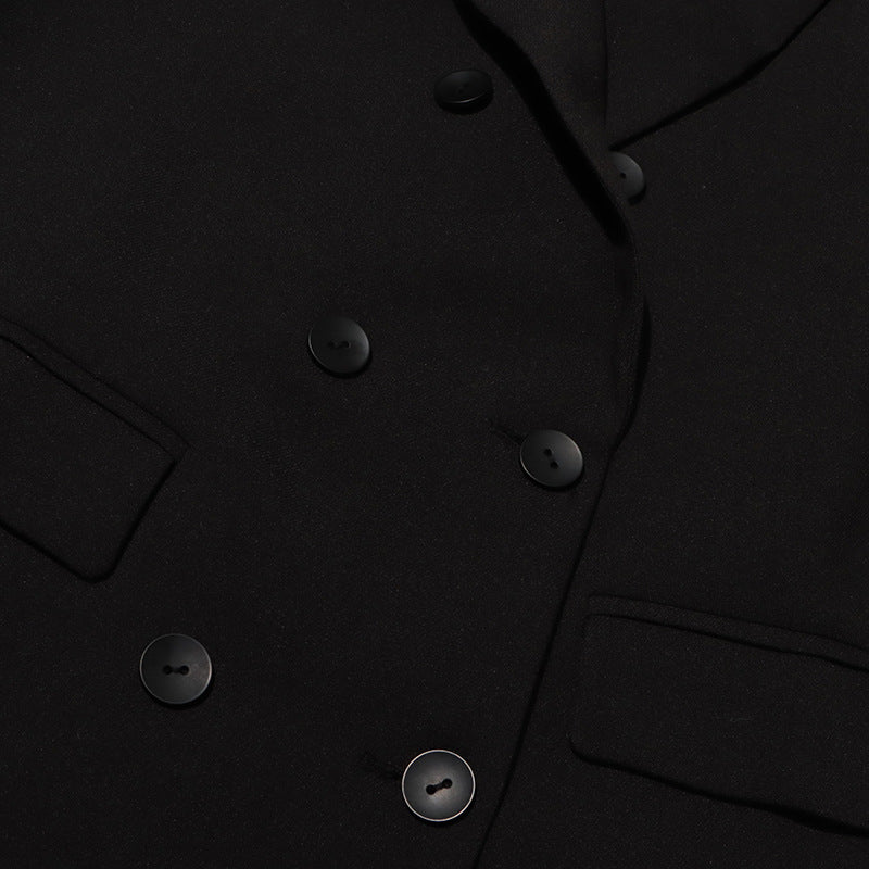 A dramatic double-breasted coat designed with structured tailoring and flowing ruffle details along the hem, blending power and femininity in one striking silhouette. Fabric name: Polyester Size Shoulder (cm) Bust (cm) Waist (cm) Sleeve (cm) Length (cm) S 40.5 106 103 59 130 M 41.5 110 107 60 131 L 42.5 116 113 61 132 XL 43.5 122 119 62 133
