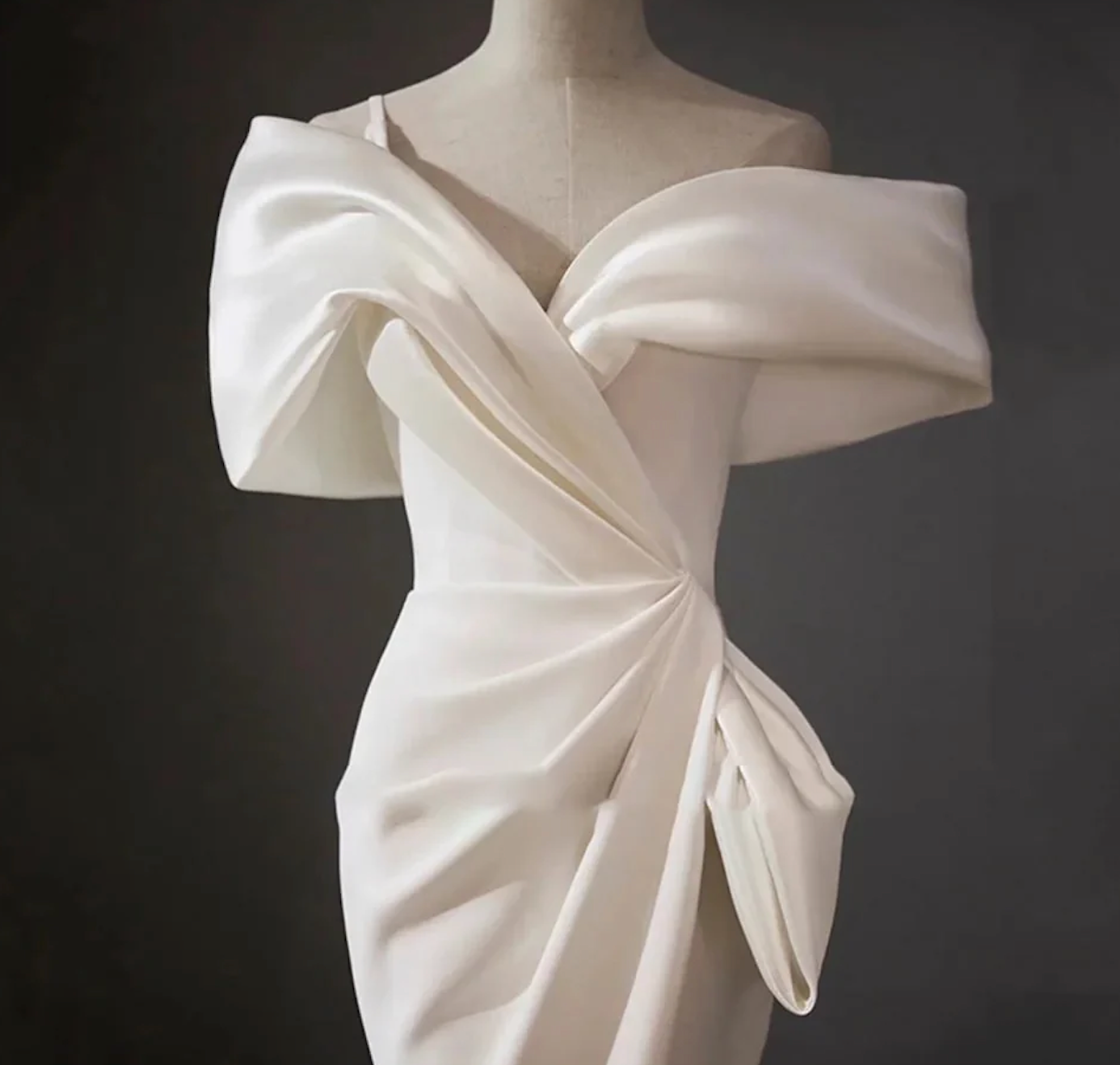off-shoulder draped gown with bow detail – Hooly
