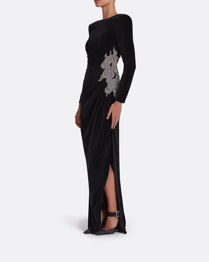 Long sleeve dress with embellished waist sides and draped details -Poppy