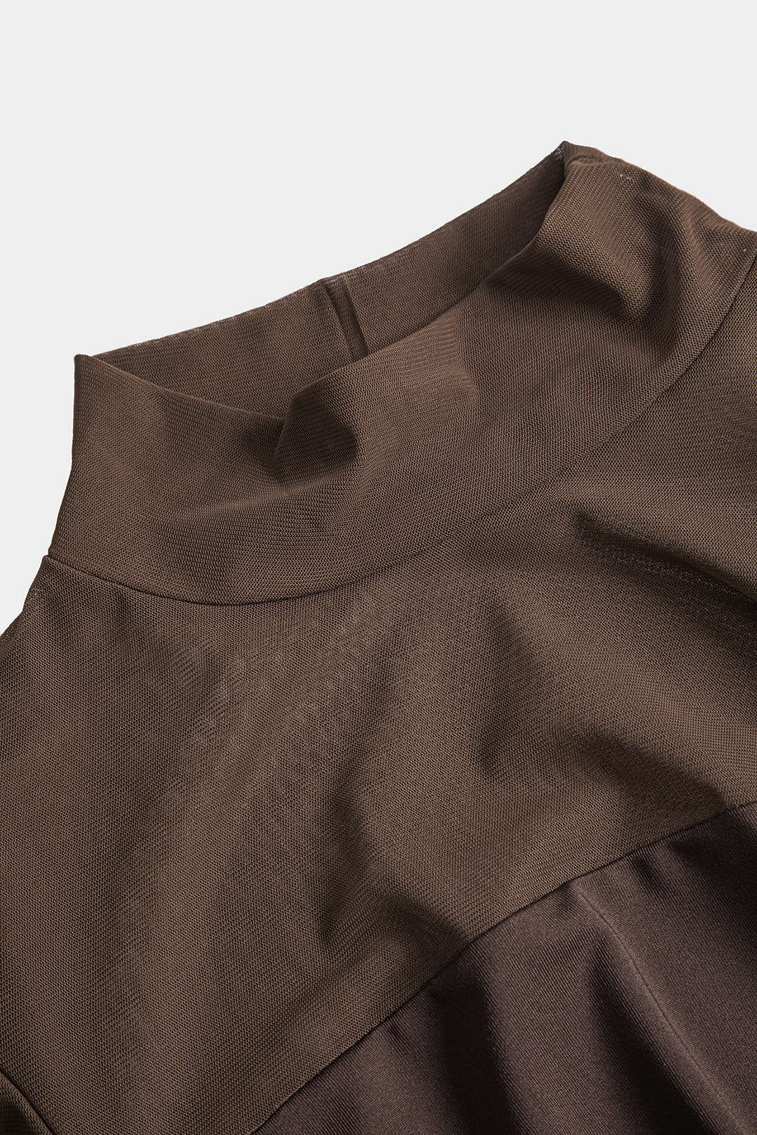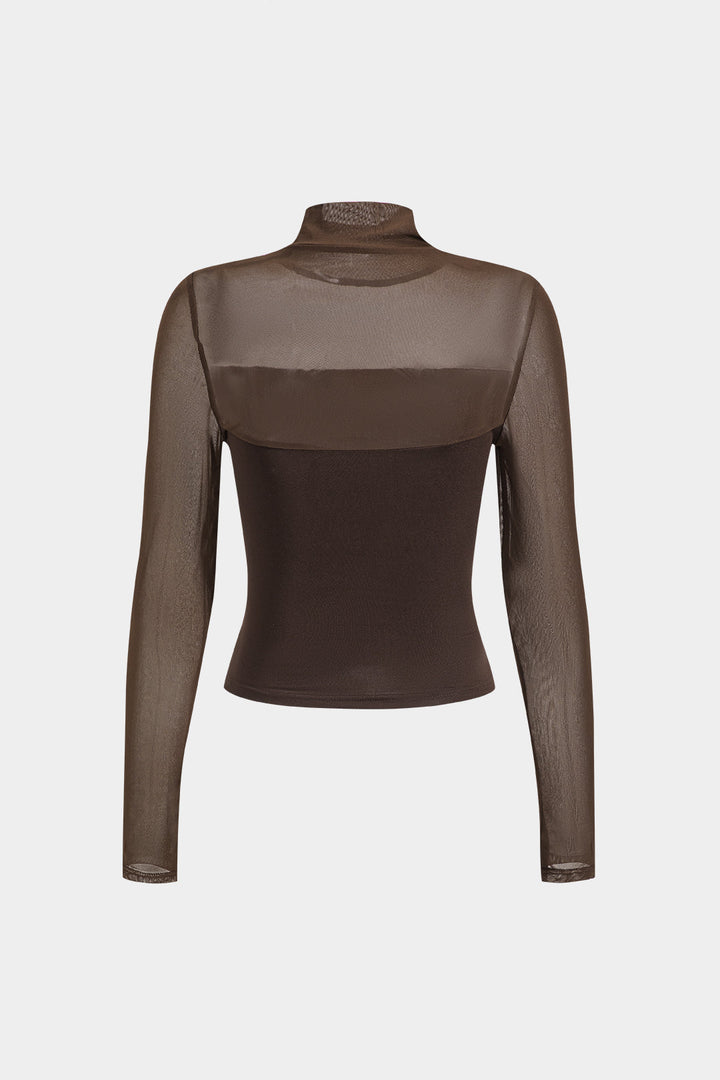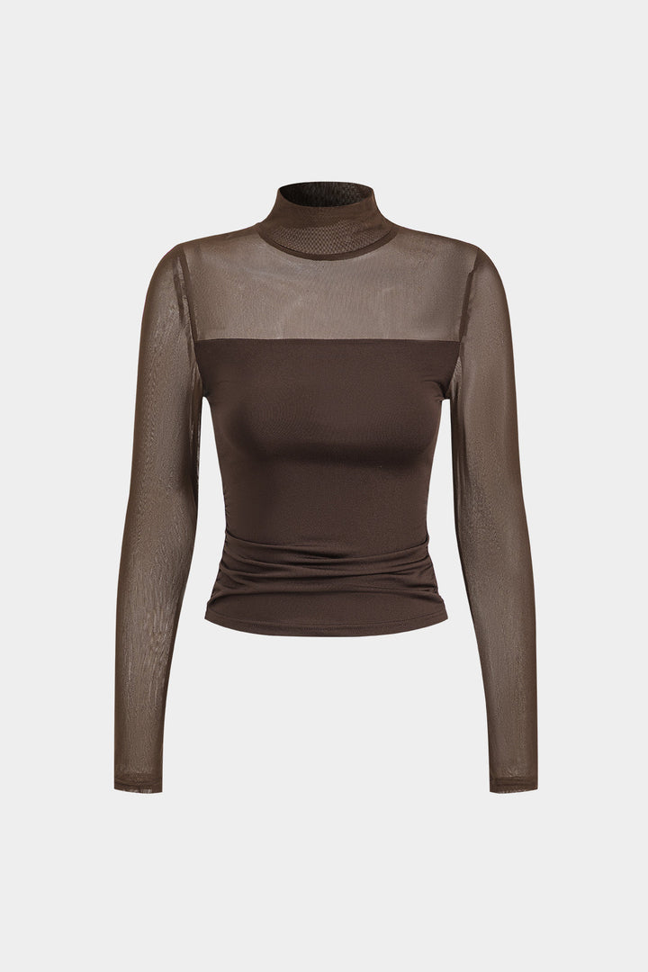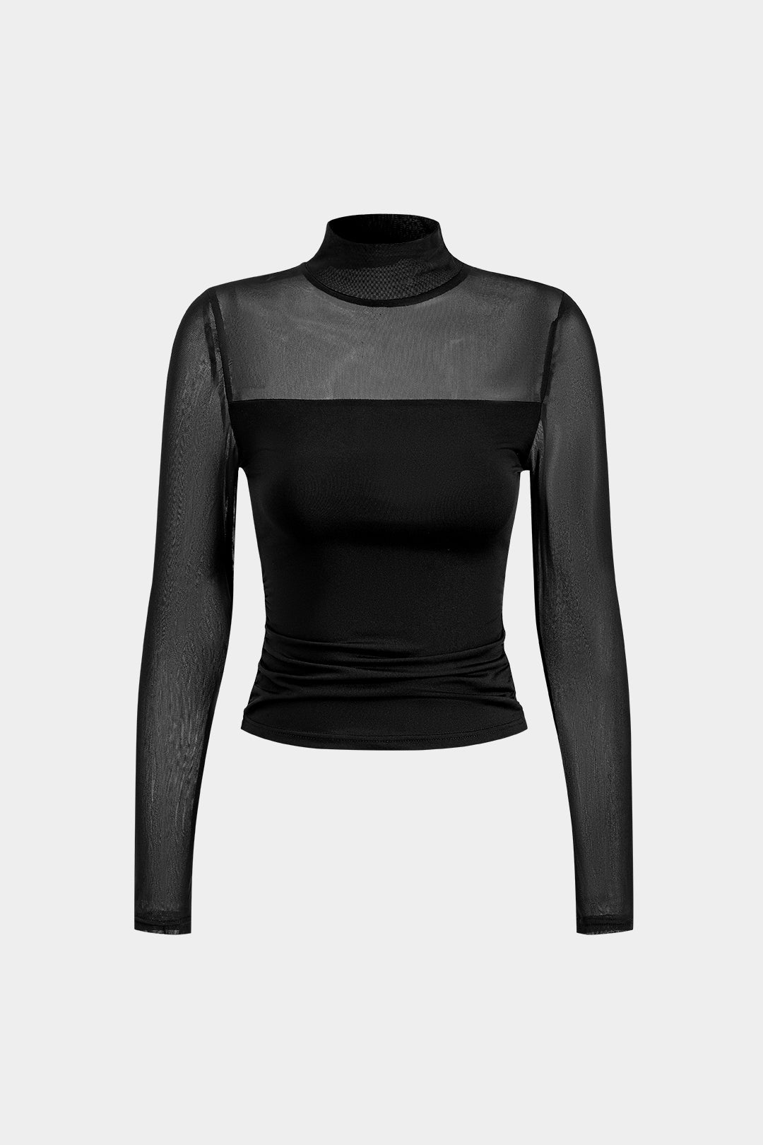 Mesh Patchwork Round Neck Long-Sleeve Top