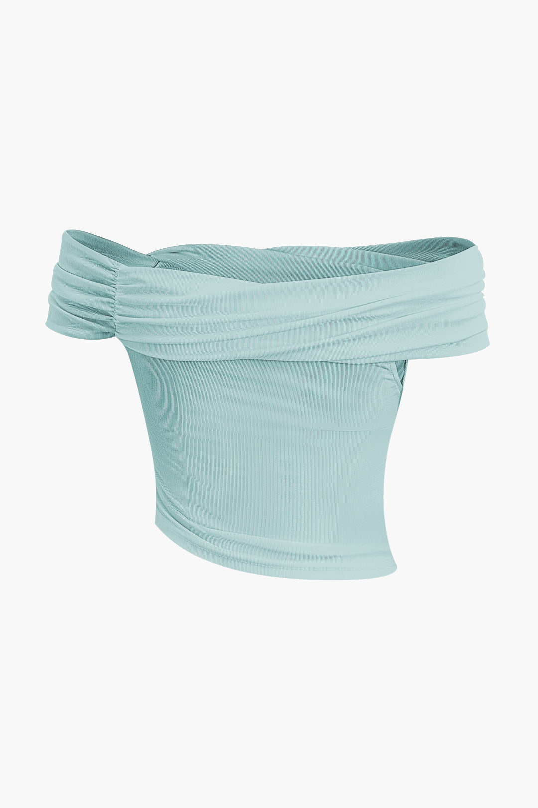 Off Shoulder Asymmetric Short Sleeve Blouse