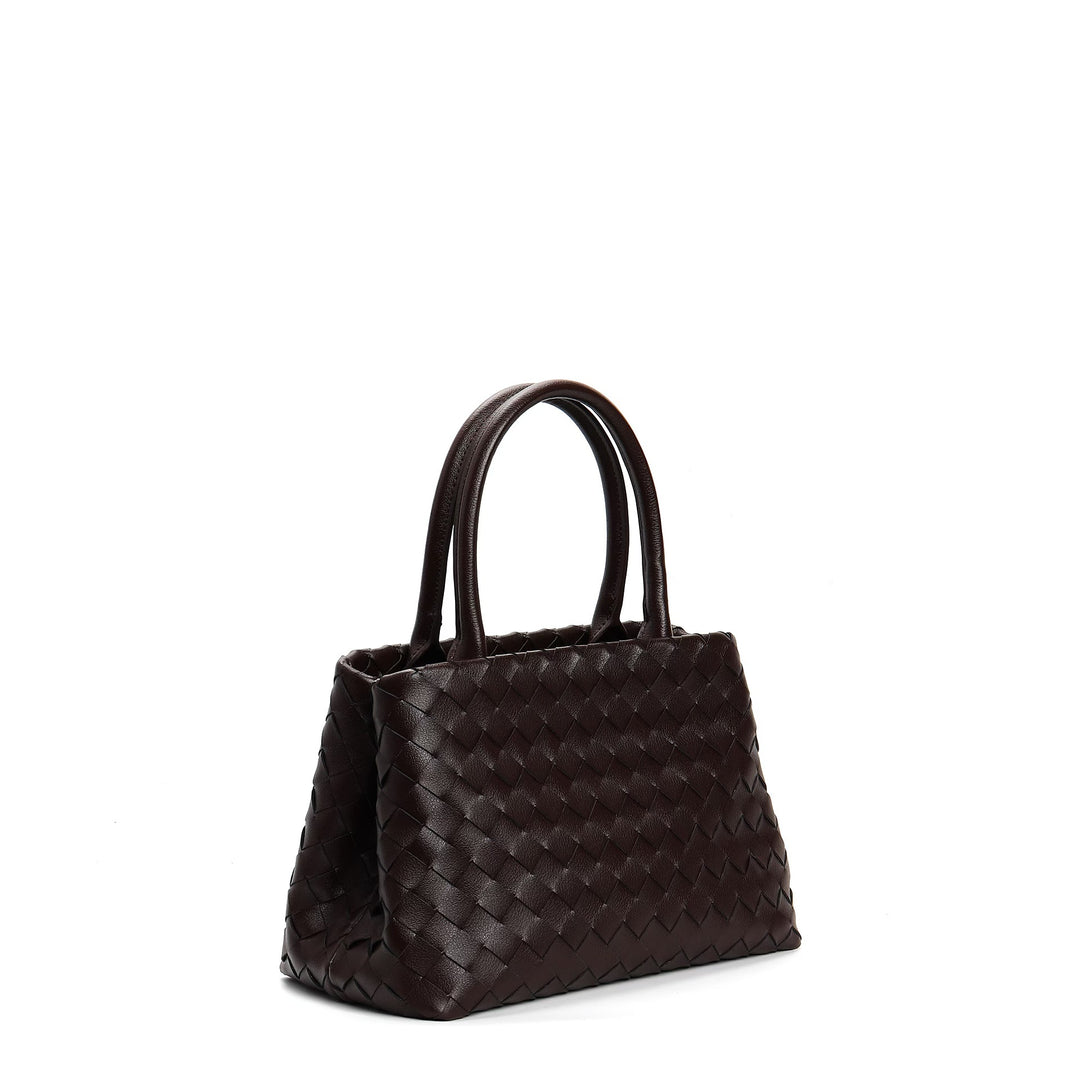 A classic woven leather handbag with a sleek design, two top handles, and a detachable shoulder strap. Perfect for everyday style, it offers ample space for essentials.