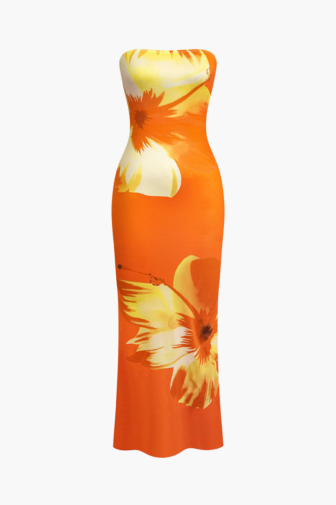 Sunny Floral Cascade Strapless Midi Dress