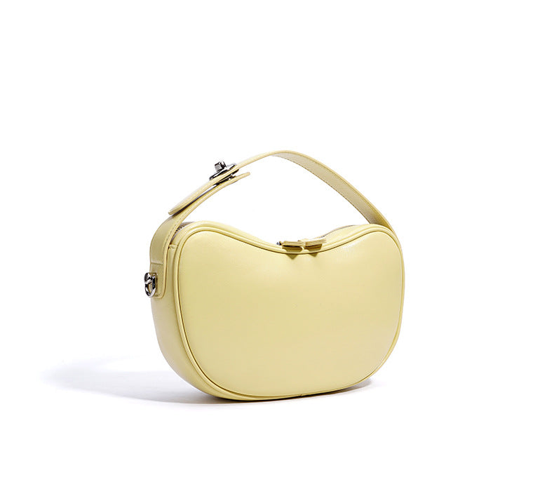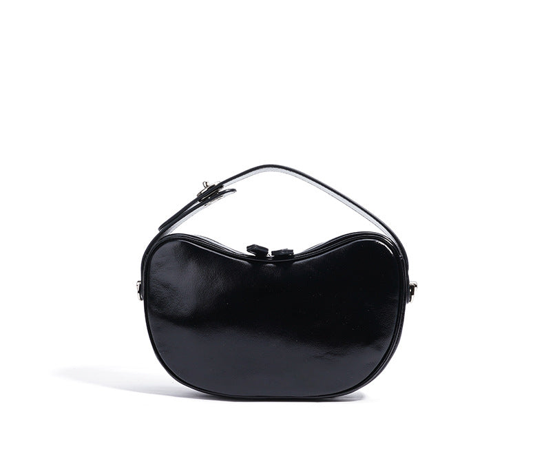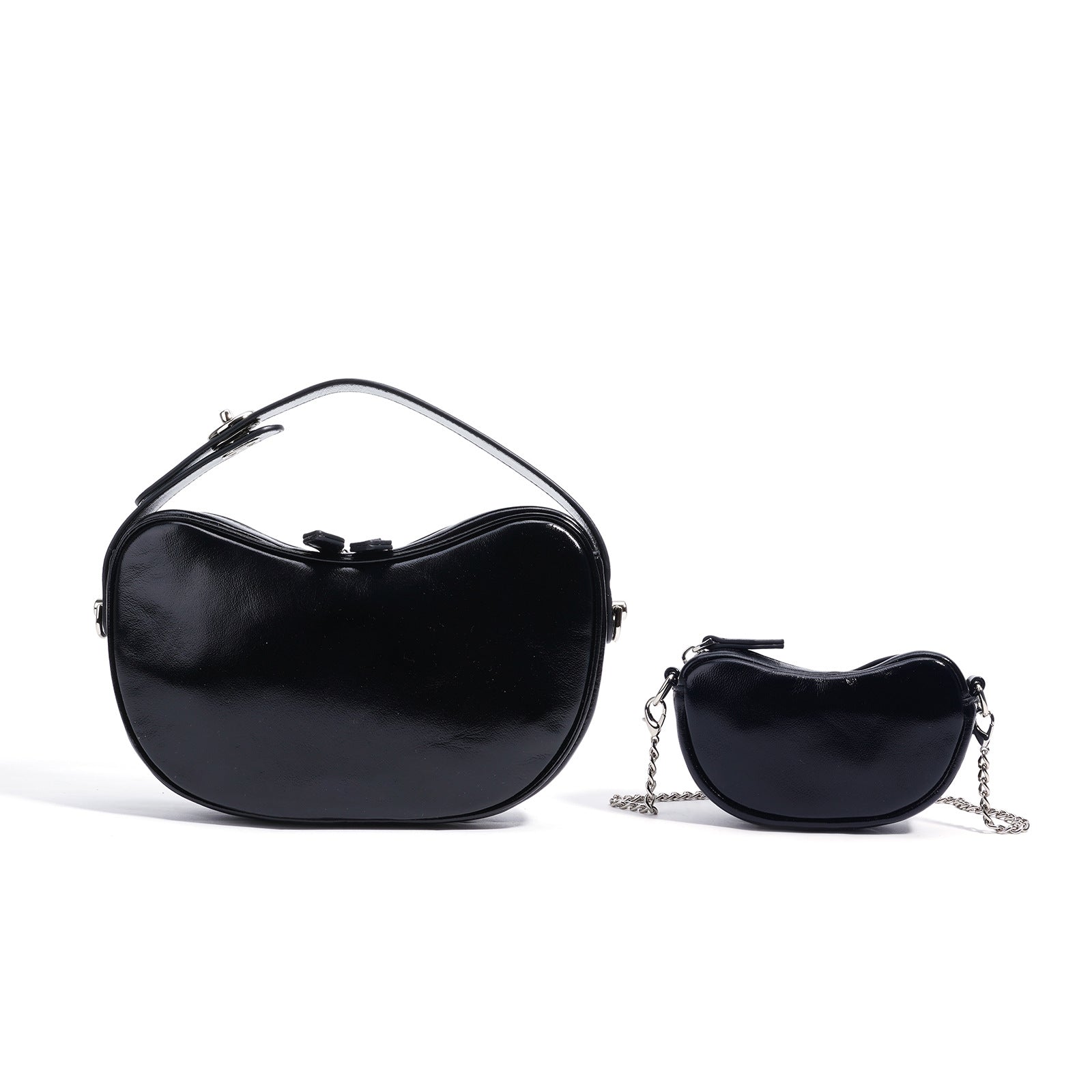优雅且结构化,这款弧形顶部包采用光滑的皮革制成,具有两种携带方式:顶部手柄和肩带。其简单的设计搭配抛光金属细节,使其成为理想的时尚选择。