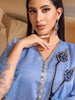 在这套火红色的西装中夺人眼球,特色包括雕塑般的不对称西装外套、宽腿喇叭裤以及肩部戏剧性的羽毛胸针装饰。是参加晚会、正式晚宴或红毯时刻的大胆宣言。
