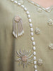 在这套火红色的西装中夺人眼球,特色包括雕塑般的不对称西装外套、宽腿喇叭裤以及肩部戏剧性的羽毛胸针装饰。是参加晚会、正式晚宴或红毯时刻的大胆宣言。