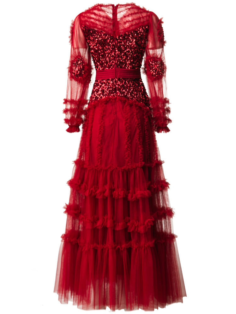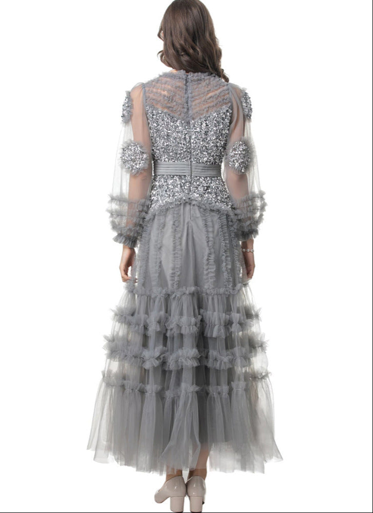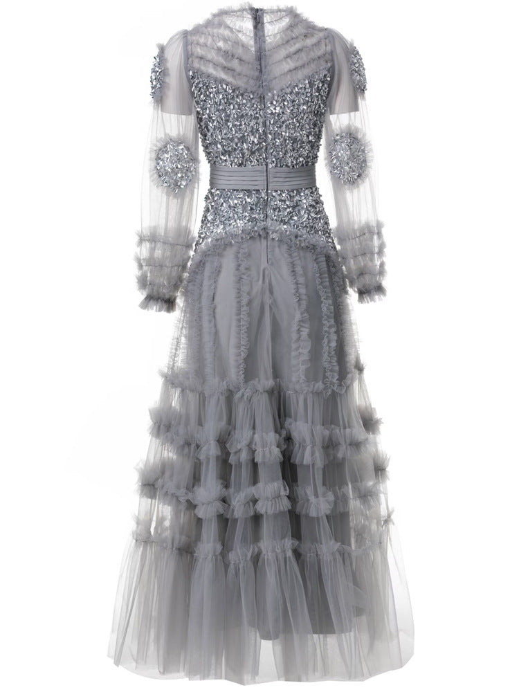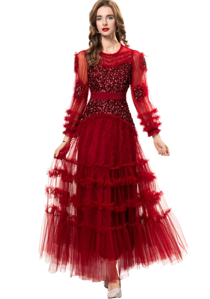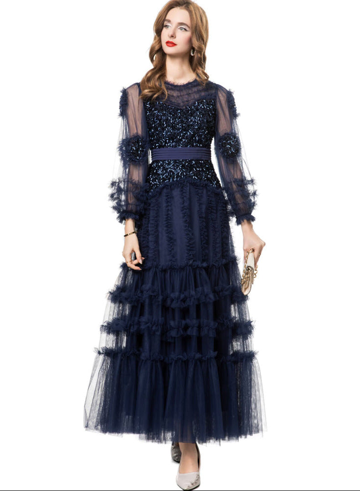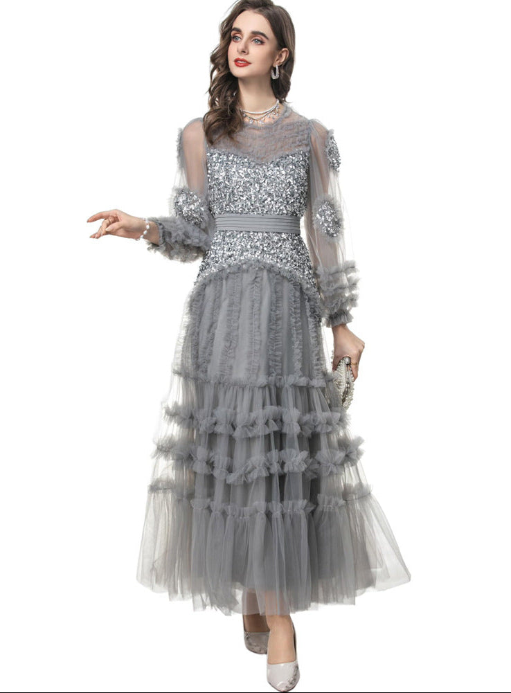 这款优雅的长袖中长连衣裙采用柔软、轻便的面料制成,具有流畅的宽松版型。它的柔软下垂腰线增添了成熟感,圆领设计和时尚的中长裙摆。
