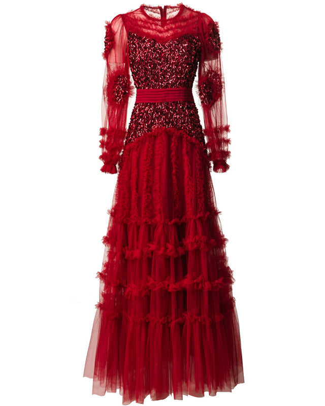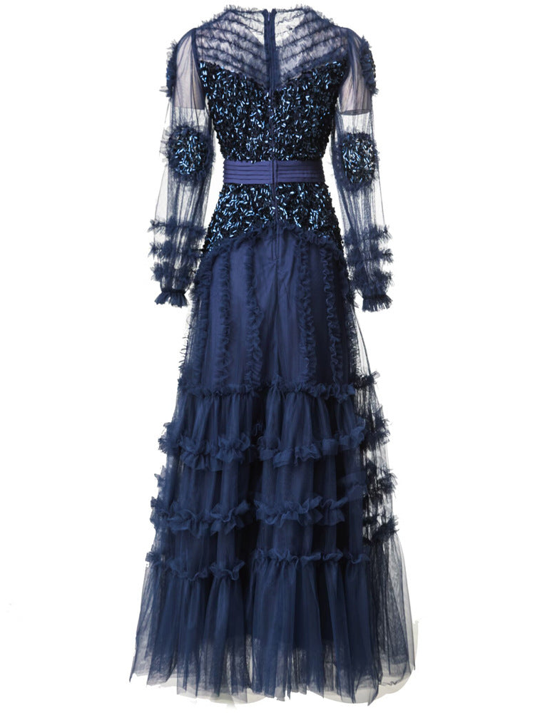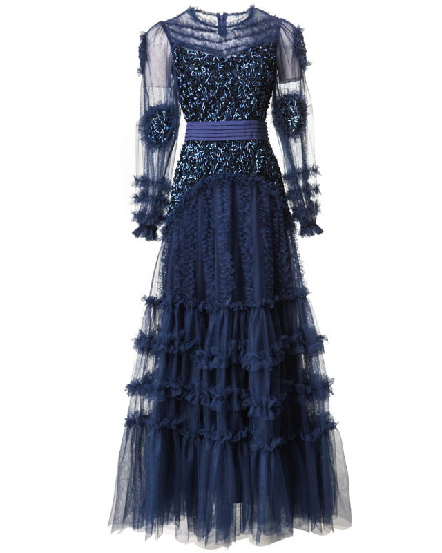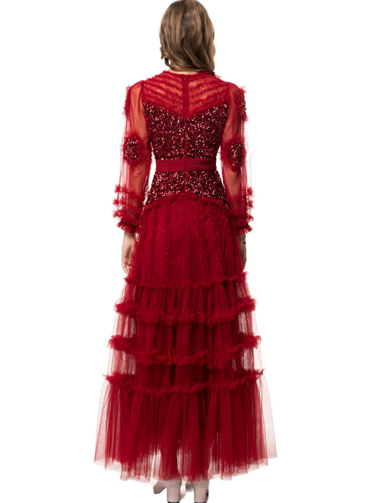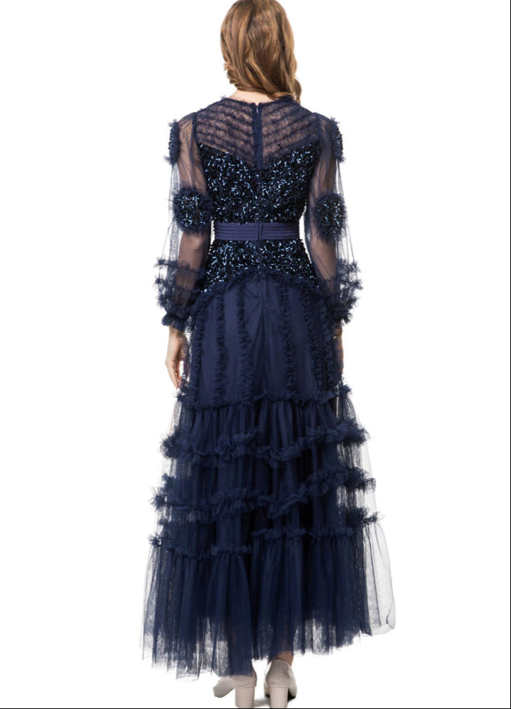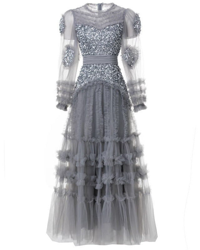 这款优雅的长袖中长连衣裙采用柔软、轻便的面料制成,具有流畅的宽松版型。它的柔软下垂腰线增添了成熟感,圆领设计和时尚的中长裙摆。