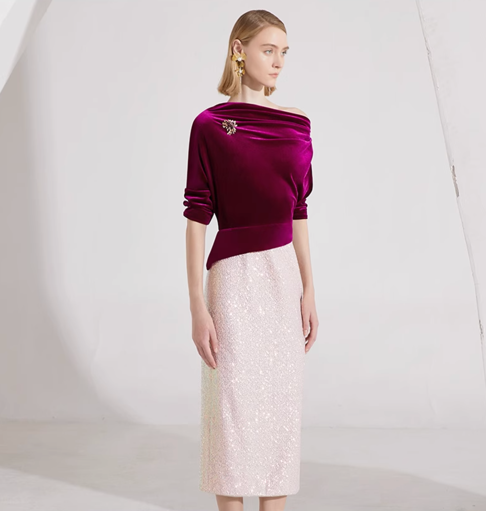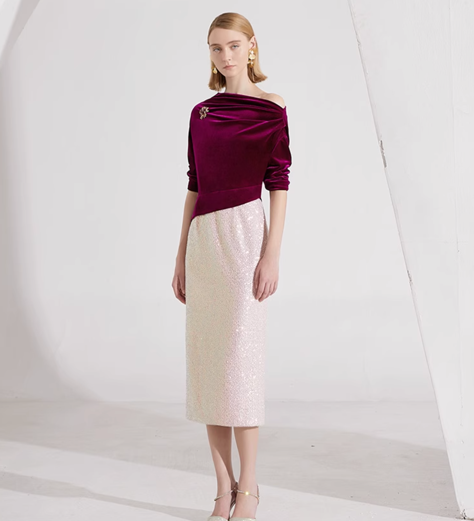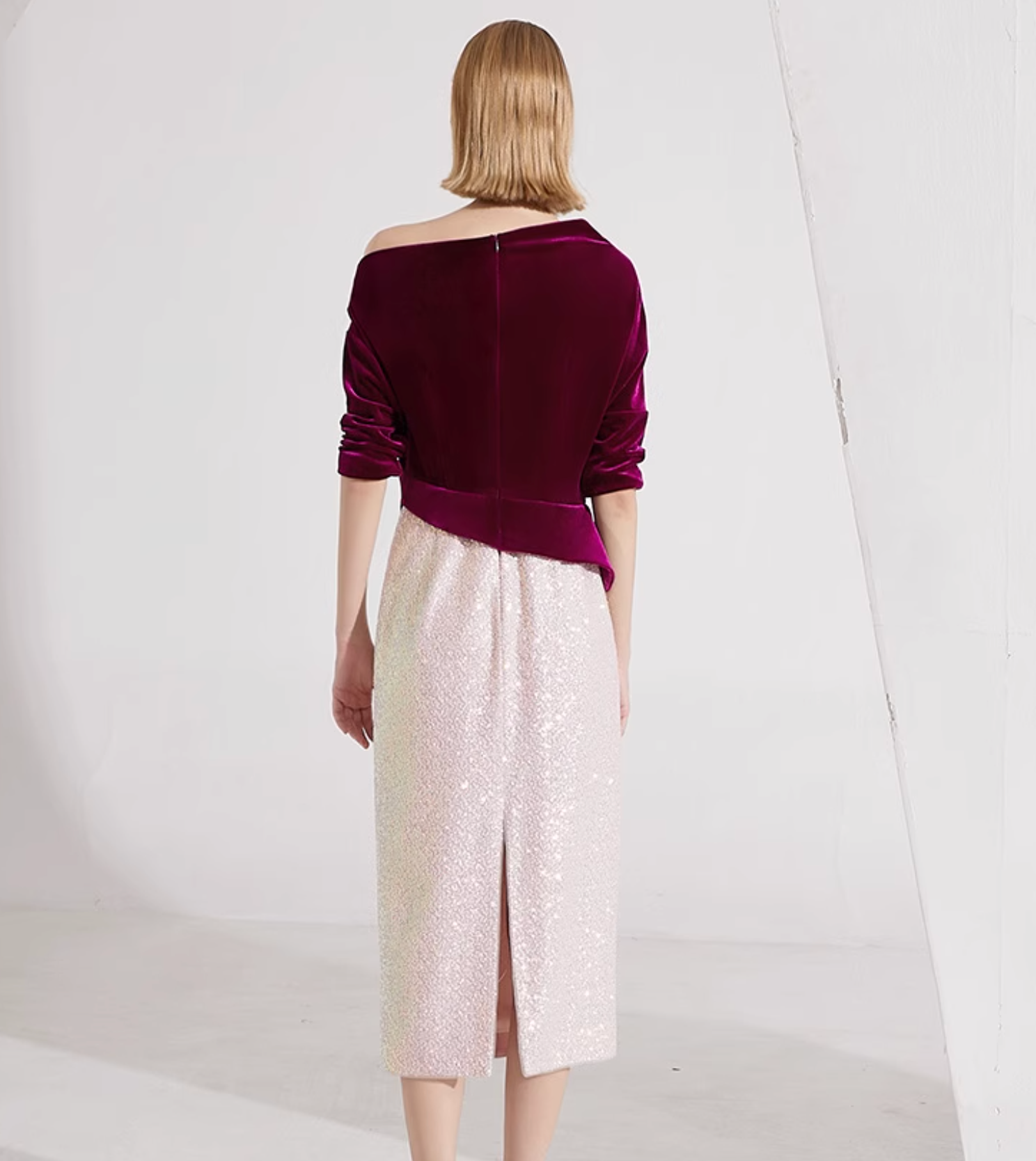 永恒的优雅与现代剪裁在这款合身的黑色中长西装连衣裙中相遇,特色是醒目的白色翻领、珍珠装饰的纽扣和结构化的半袖。非常适合高档晚会或在董事会会议中展现威严。