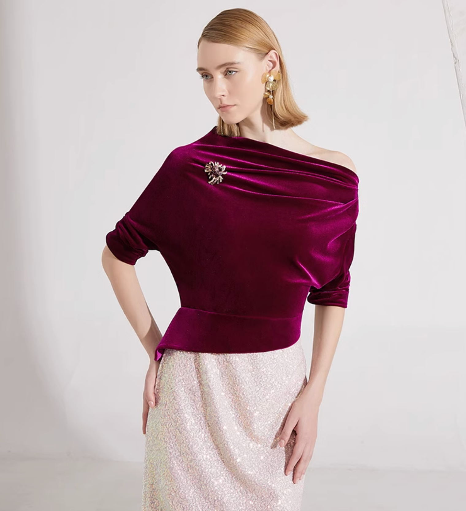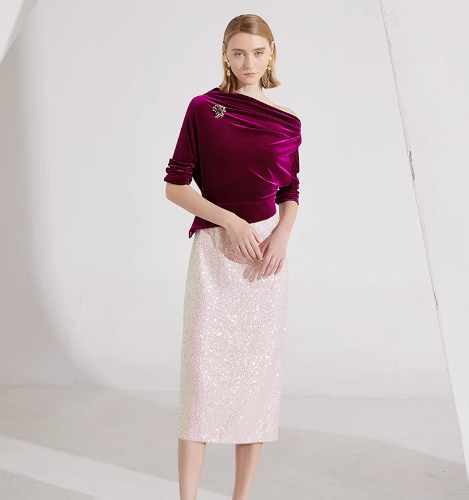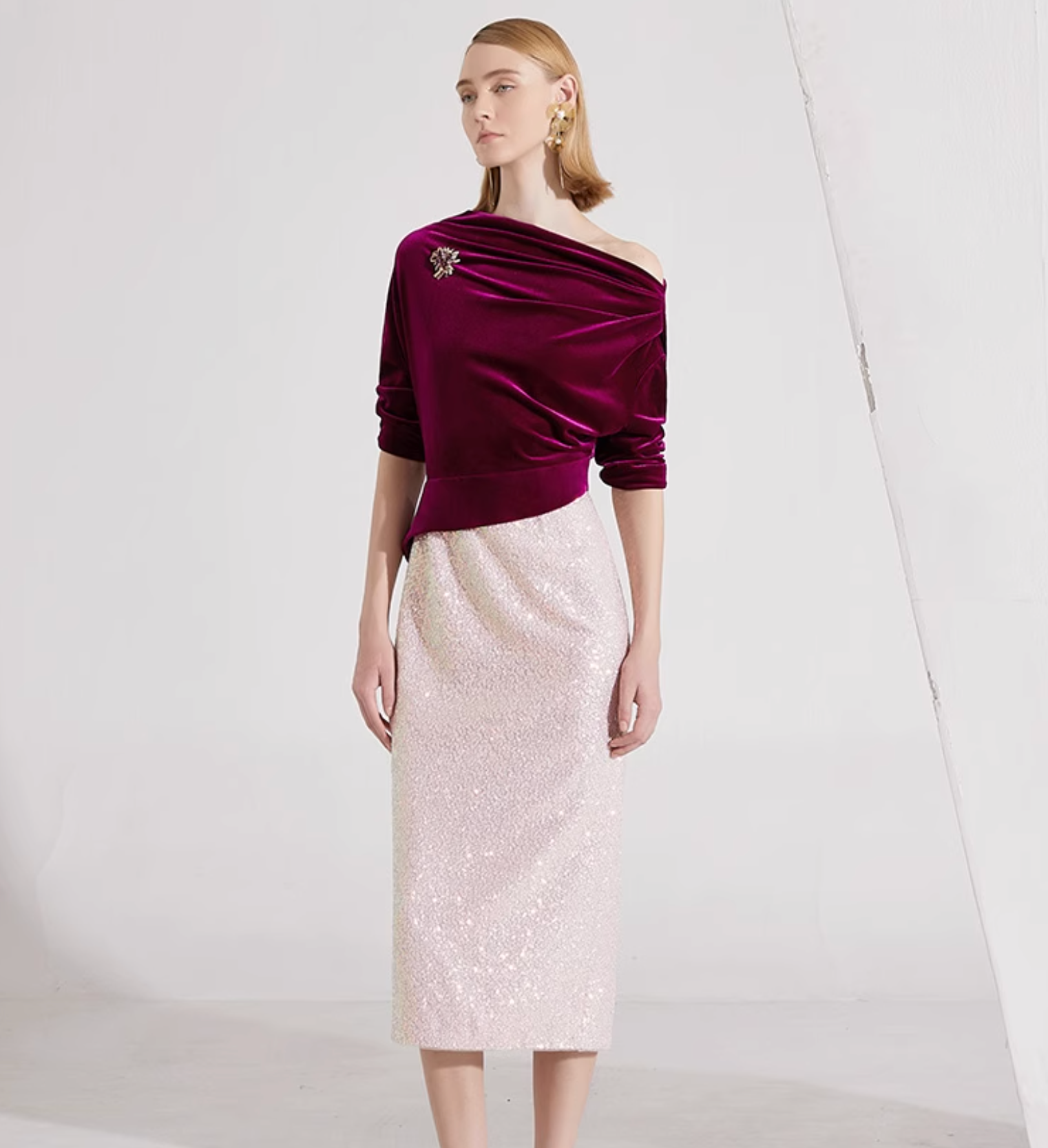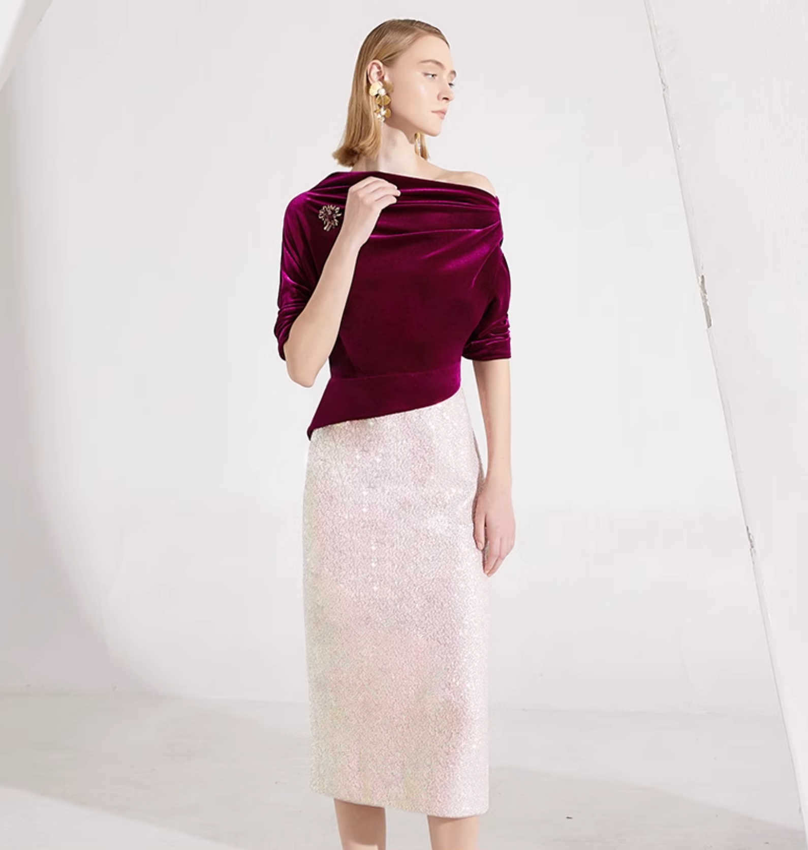 定制喇叭套装,配缎面泡泡袖 - VALENCIA