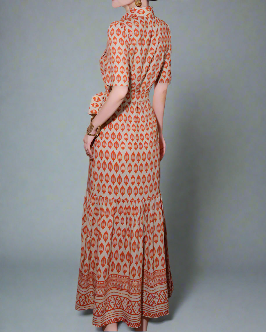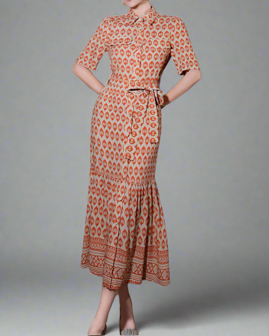 短袖中长连衣裙,配有3D花卉贴花 - BLOOMIQ