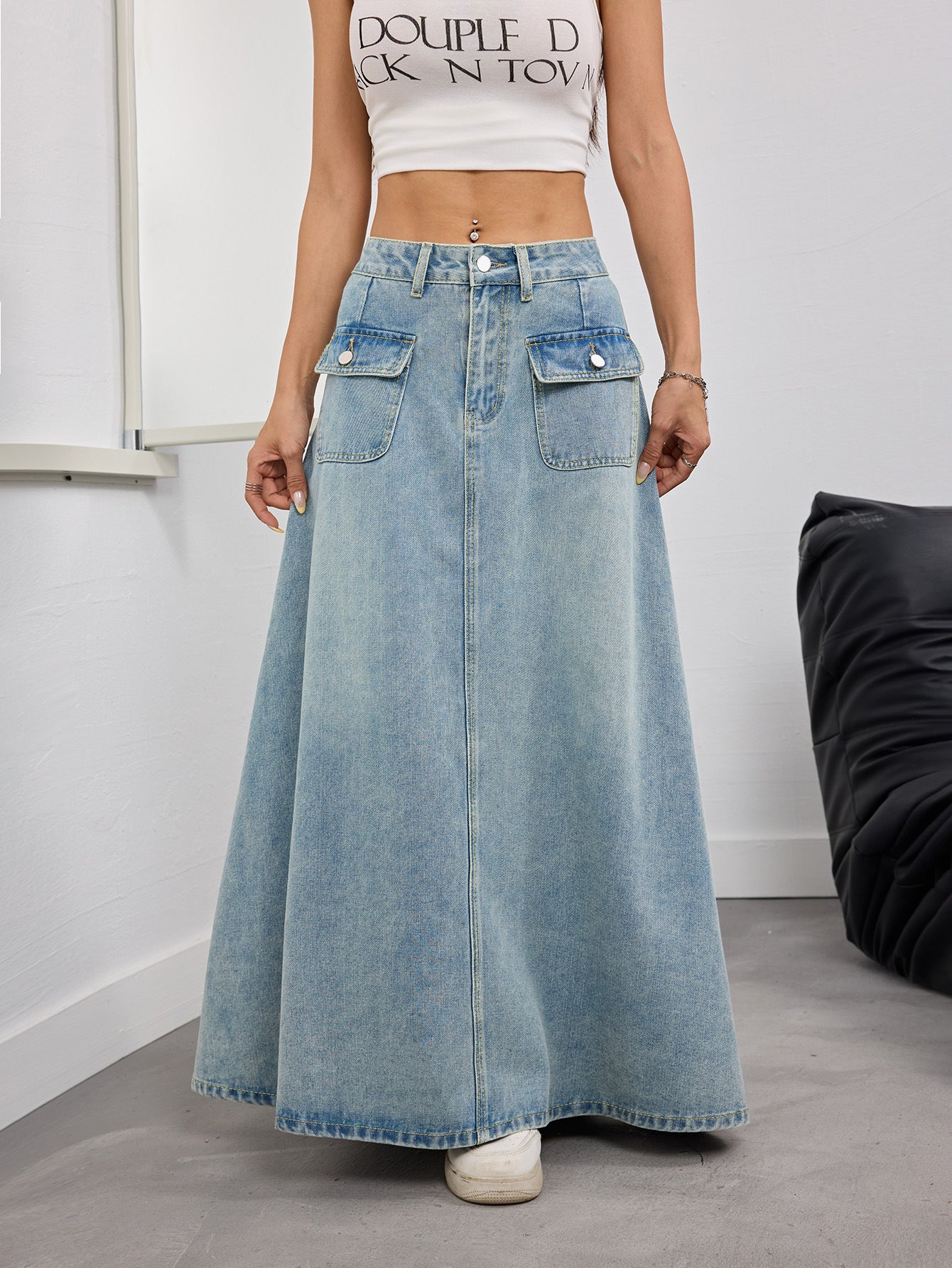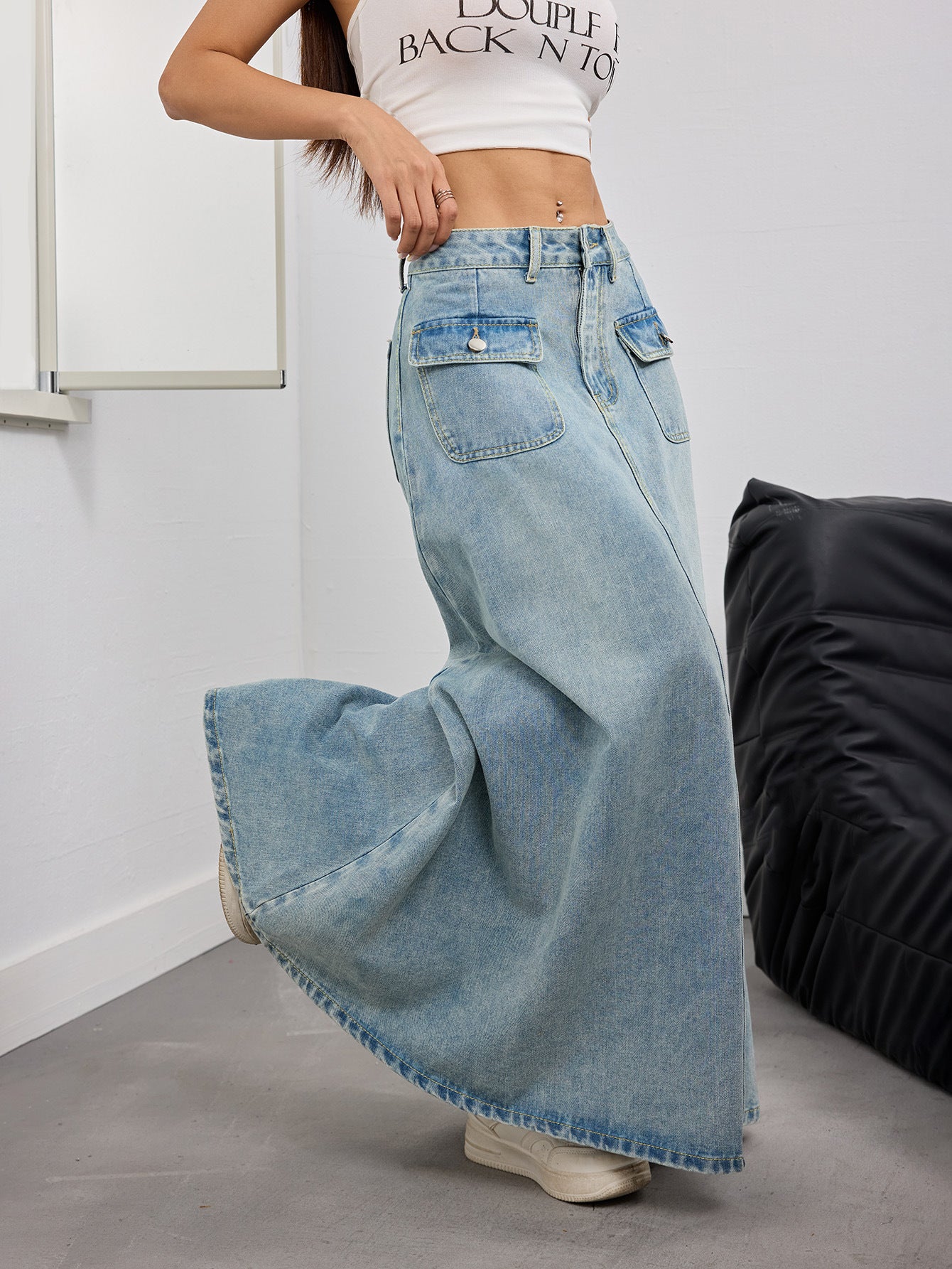 褶皱喇叭袖上衣和高腰裙套装,配腰带 – Rosiny