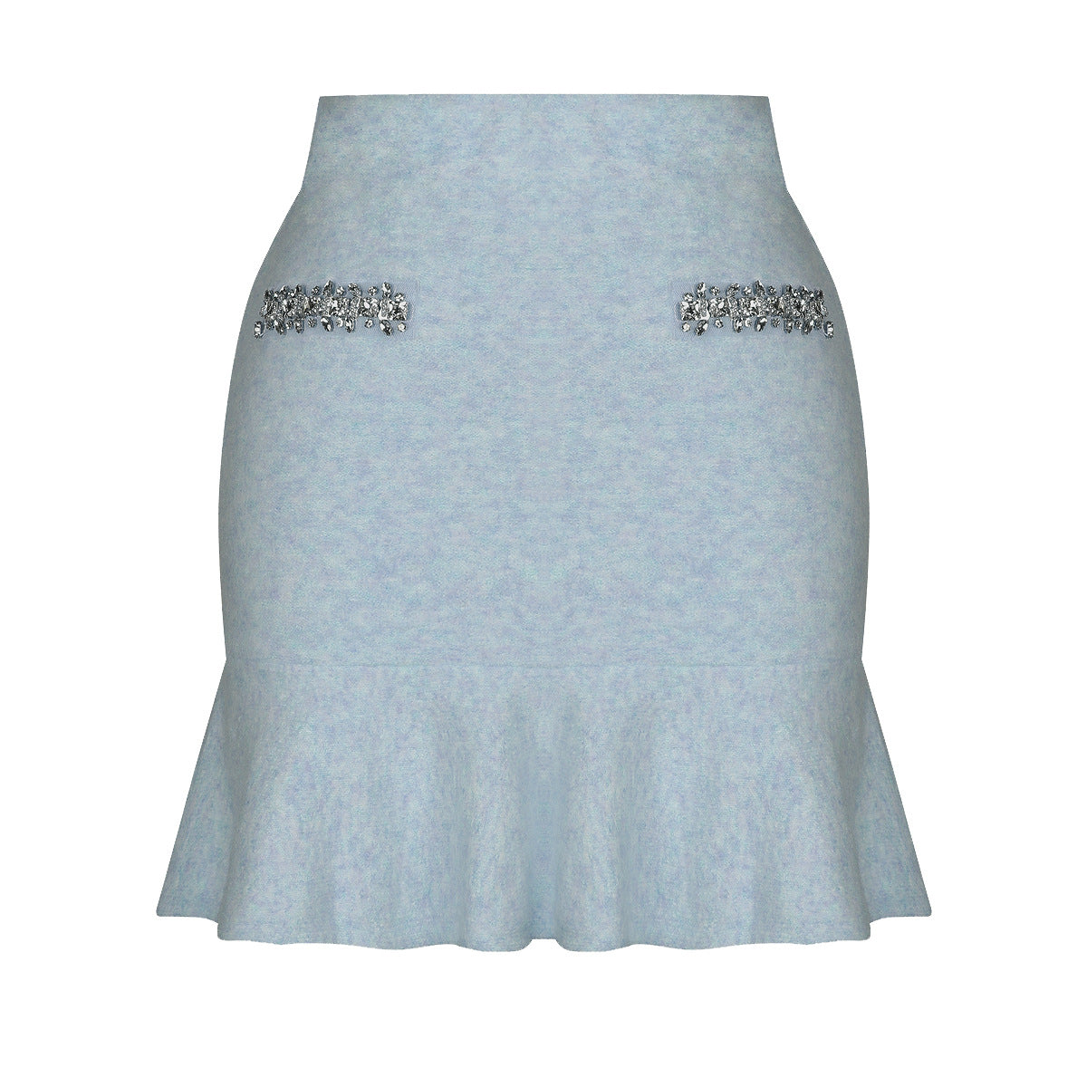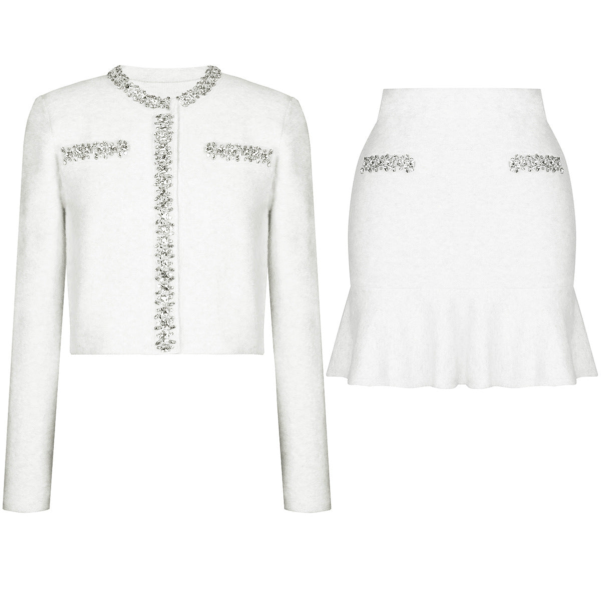 褶皱喇叭袖上衣和高腰裙套装,配腰带 – Rosiny